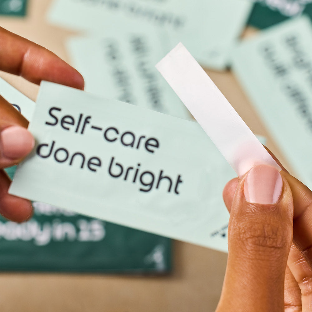 Open a sachet and wet your top teeth with your tongue.
