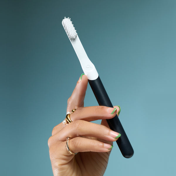 Sonic toothbrushes use high-speed vibrations to create a dynamic cleaning action that moves fluid between teeth, providing a gentle yet deep clean. Oscillating toothbrushes, like quip’s Rev Oscillating Toothbrush, utilize rotating and pulsating movements to scrub each tooth surface effectively. Both sonic and oscillating toothbrushes are effective and great for sensitive teeth and gums. The original quip Sonic Toothbrush is great for those upgrading from a manual toothbrush, while the quip Rev Oscillating Toothbrush is better for targeted plaque removal and cleaning hard-to-reach areas.